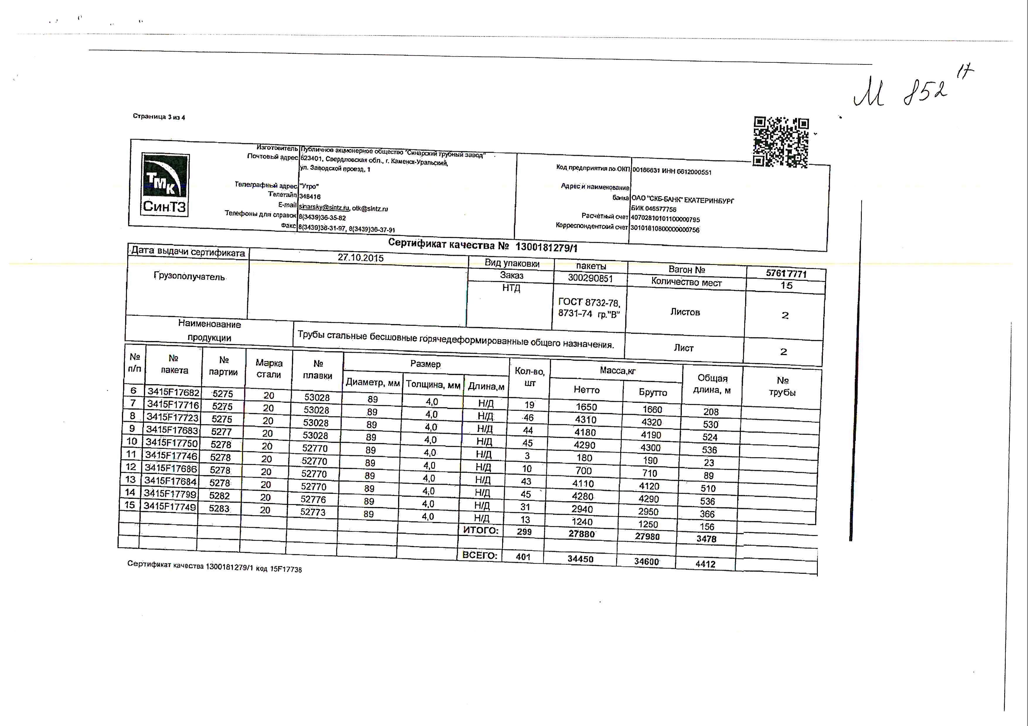 С каждой товарной позицией мы предоставляем все сертификаты и паспорта качества, а также товарно-транспортную накладную.